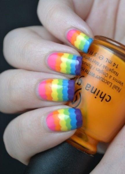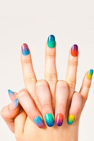 Aunque a todas las chicas les gustan las uñas graduadas, pero pueden ser un poco difíciles de arreglar. Para no preocuparse, puede optar por gradientes brillantes que son mucho más fáciles de crear e igual de impresionantes.