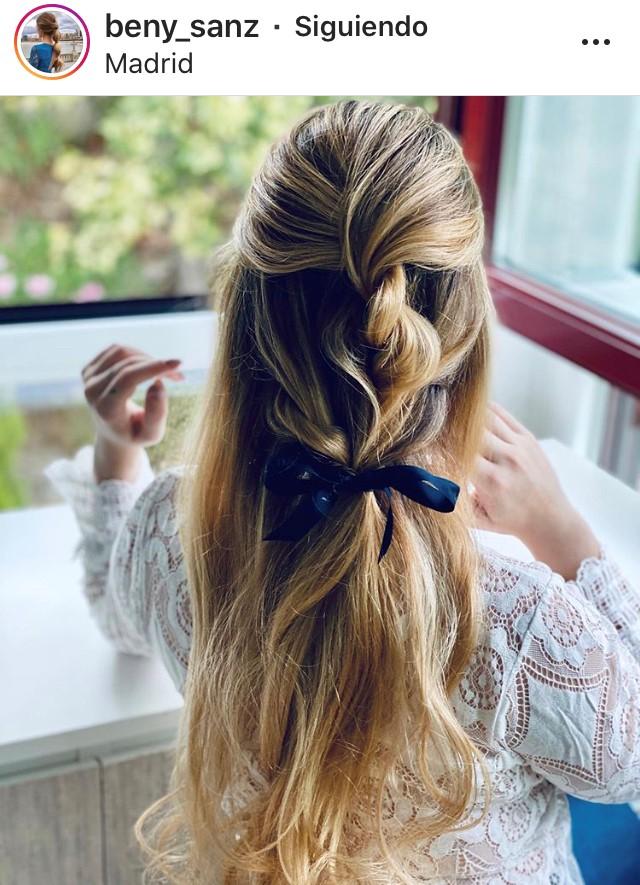 Si tenéis una melena larga tenéis suerte ya que con unas simples ondas y una coleta consigues un peinado adecuado para la ocasión, pero si quieres algo un poco diferente puedes optar por la coleta burbuja, además Sandra de @elpeiadodelanovia nos preparó un tutorial que podéis ver pinchando el enlace.