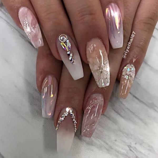 Sólo hay un poco de rosa pálido que puedes llevar en las uñas hasta que se convierta en un estilo repetitivo visto en el baile de graduación. Si buscas un color suave, pero no quieres usar lo que todos los demás usan, entonces esta manicura es para ti. Una manicura de color blanco nacarado es elegante, fresca y perfecta para el baile de graduación. Añade un poco de brillo y seguro que tendrás una de las uñas con más clase de la sala.