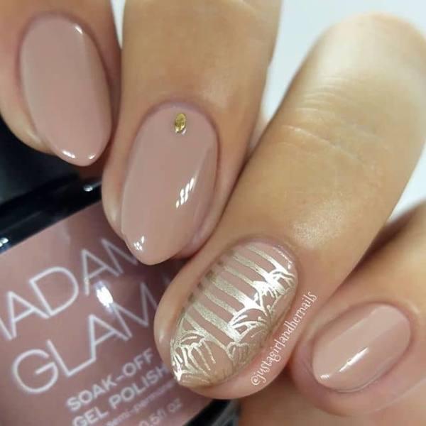 Una de las mejores maneras de hacer que tus uñas destaquen en la noche del baile es añadir un poco de diseño de arte de uñas a un color suave y tradicional. Este esmalte marrón habría sido desnudo y aburrido sin el adorno dorado y los detalles florales a rayas. Esta es una gran manera de mantener las cosas simples, pero impresionante para su gran noche.