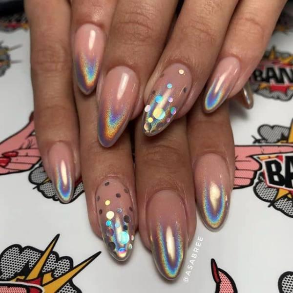 33. Arte de uñas de baile holográfico de moda