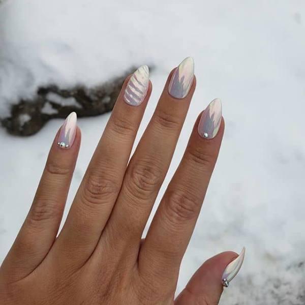 39. Manicura cromada con detalles elegantes