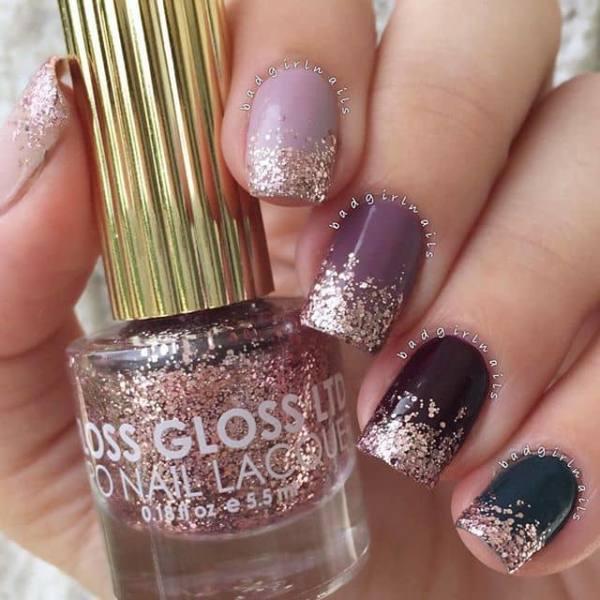 34. Bonitas uñas de ciruela con brillo y resplandor