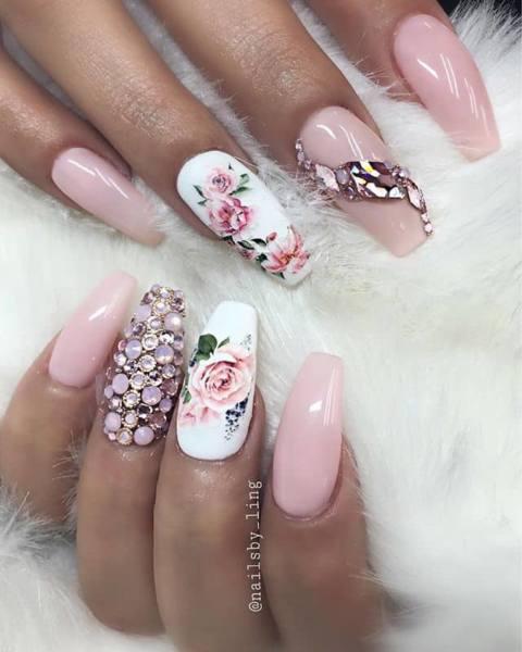 El arte de las uñas viene en todas las formas, tamaños y diseños. El arte floral de las uñas es una petición popular, especialmente para ocasiones especiales como ir de vacaciones, una boda o un baile. Si llevas un ramillete en tu muñeca para tu gran noche, dobla con un diseño floral. Esta manicura sutil, sin esfuerzo y majestuosa es tan elegante y perfecta.