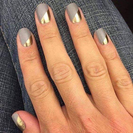 ¿Quién dice que no puedes tenerlo todo? Una de las mejores combinaciones de lo viejo y lo nuevo que hemos visto, este diseño de uñas doradas y plateadas mezcla la pintura mate atrevida con un acabado metálico de alto brillo, y el diseño asimétrico toma lo mejor tanto de las uñas metálicas como de las uñas mates por igual para crear una imagen llamativa.
