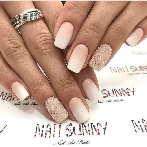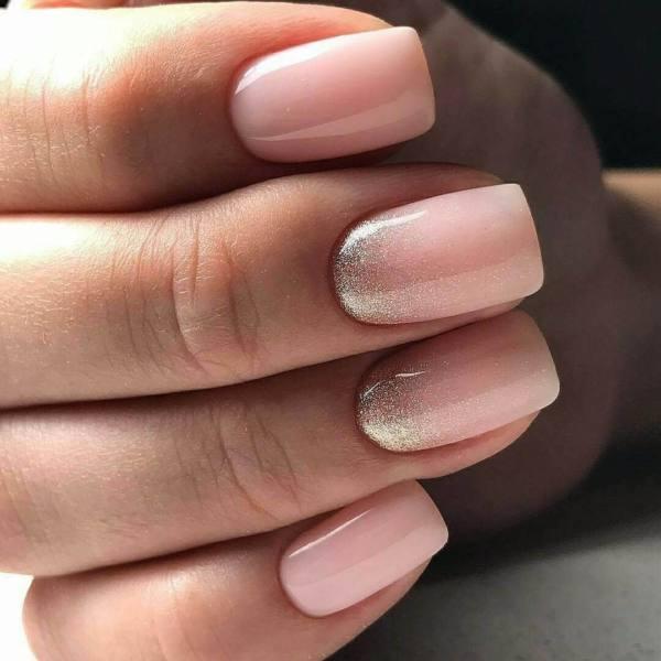 Ombre puede ser una tendencia que realmente despegó hace unos años, pero este diseño de uñas cortas combina el brillo, el oro y el lustre para mostrar por qué es una tendencia que todavía se está imponiendo en 2018! Las uñas de color desnudo proporcionan el fondo perfecto para el diseño de uñas brillantes, y el resultado final tiene un aspecto natural, relajado y elegante.