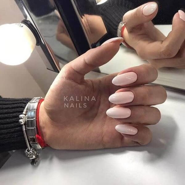 Por otro lado, si no quieres ningún tipo de brillo o destello en tus dedos, pero tienes confianza en su forma y color para ganar el día, estas uñas lisas y de forma ovalada son perfectamente bonitas en color rosa, con sólo un ligero gradiente para mejorar su aspecto y llevarlo a otro nivel.