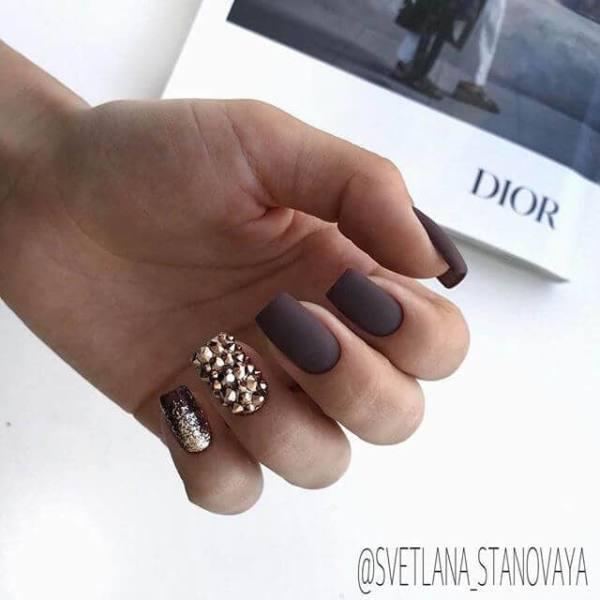 Como muchas otras entradas de esta lista, estas uñas están tan cerca de ser uñas simples y ordinarias, pero con el más mínimo giro para subir un nivel. Aquí, sólo el más pequeño toque de brillo dorado alrededor de las camas de los dos puntas de acento proporcionan el brillo suficiente para atrapar la luz.