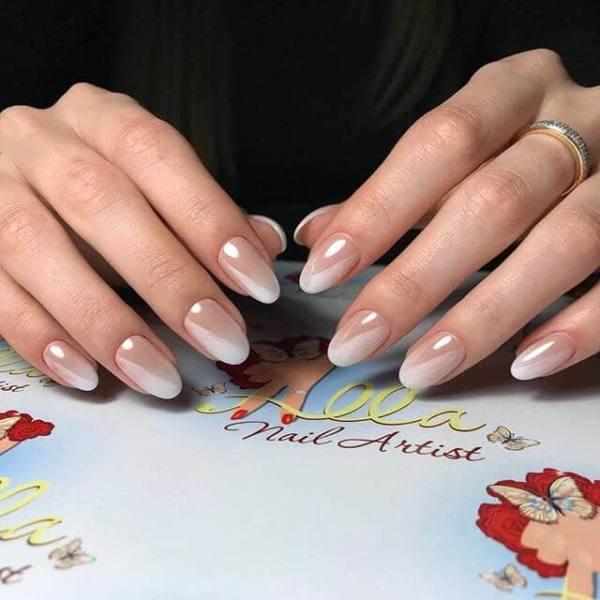 No todo lo que brilla es oro, y no todas las uñas tienen que estar brillantes para ser absolutamente hermosas. Este elegante diseño de uñas presenta uñas de color rosa desnudo que han sido pulidas hasta alcanzar el brillo, de modo que parecen casi líquidas contra la piel, con un ligero desvanecimiento del color para realmente captar la atención de todos los demás.