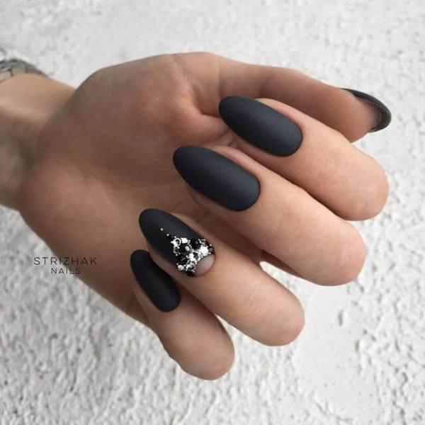 El suave y sólido negro mate de estas uñas está perfectamente resaltado por el toque de brillo y la piel desnuda en el acento! Con el toque del color natural de las uñas asomando, es un equilibrio perfecto entre el drama total y la simplicidad natural, y el diseño brillante de los cristales sólo ayuda a lograr ese equilibrio aún más.