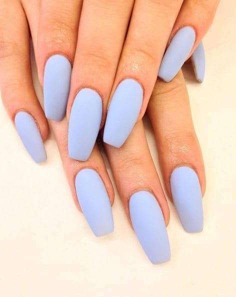 Para un look casi desnudo, pero que aún así proporciona un poco de diversión, el color primaveral, este diseño de uñas largas presenta una suave lavanda o lila que es perfecta para casi cualquier look pastel, con un trasfondo lo suficientemente azul para hacerlo fresco y reservado, pero lo suficientemente rojo para iluminarlo un poco.