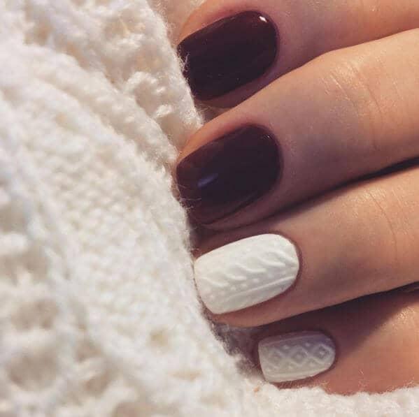 Los diseños de las uñas no tienen que ser llamativos o dramáticos para ser bellos. El bonito diseño tejido de estas uñas de acento es una combinación perfecta para los colores ricos y oscuros de las otras uñas, de modo que el diseño de la uña negra no abrume al espectador, y el suave y delicado patrón sigue siendo impresionante en su reserva.