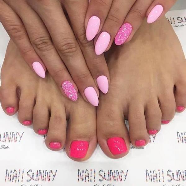 A la princesa interior que hay en ti le encantarán estas uñas de color rosa. Una raya de jaspeado añade interés mientras que los sutiles acentos de brillo capturan los ojos. Notarán que la mayoría de estas uñas son de un rosa helado que se presta bien a los colores primaverales y a la ropa de clima cálido.