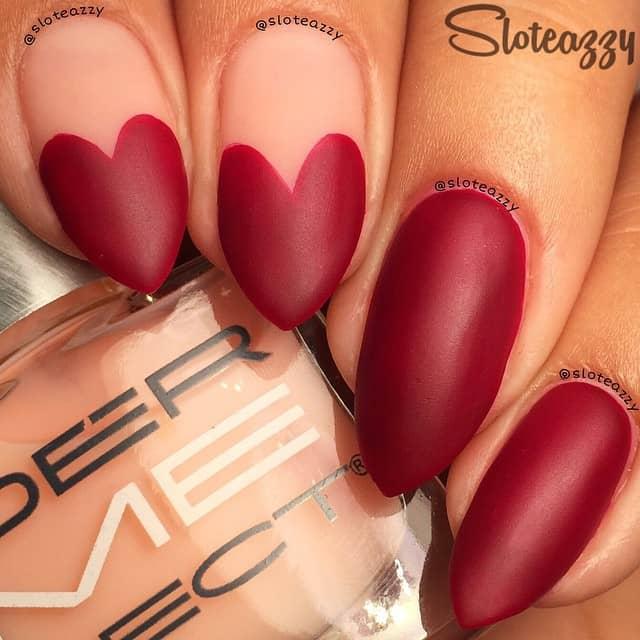46. Uñas de cabeza de flecha fácil con puntas de corazón rojo y acabado mate