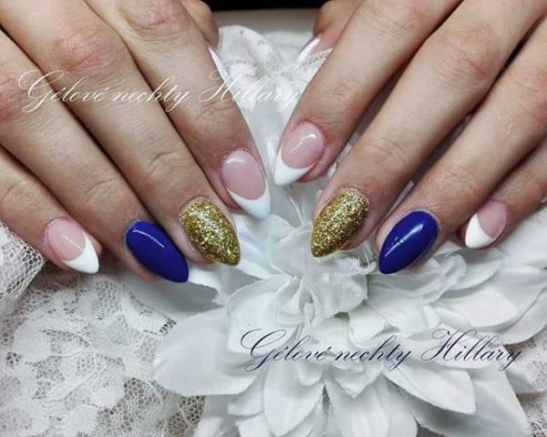 Te sentirás como una princesa con estos magníficos colores, con un tono diferente en cada dedo. Las puntas de las uñas de los dedos selectos están cubiertas con una manicura francesa clásica que resalta la belleza natural de las manos del portador. Con un acabado acrílico y toques dorados, este es un look que puede ser vestido de arriba a abajo.