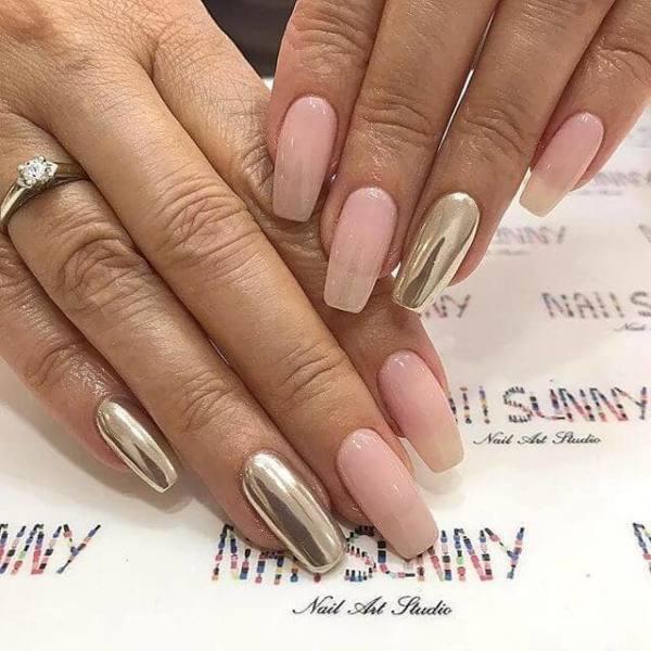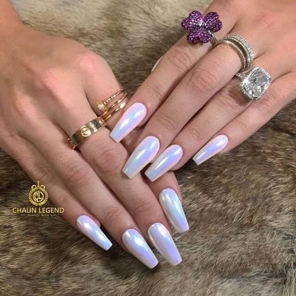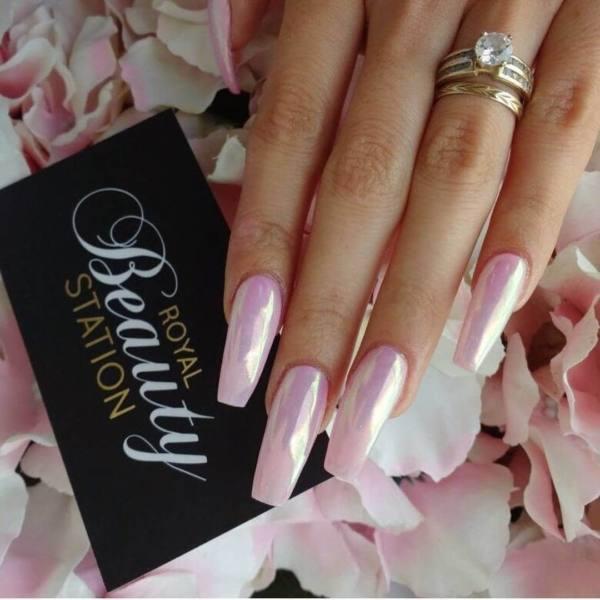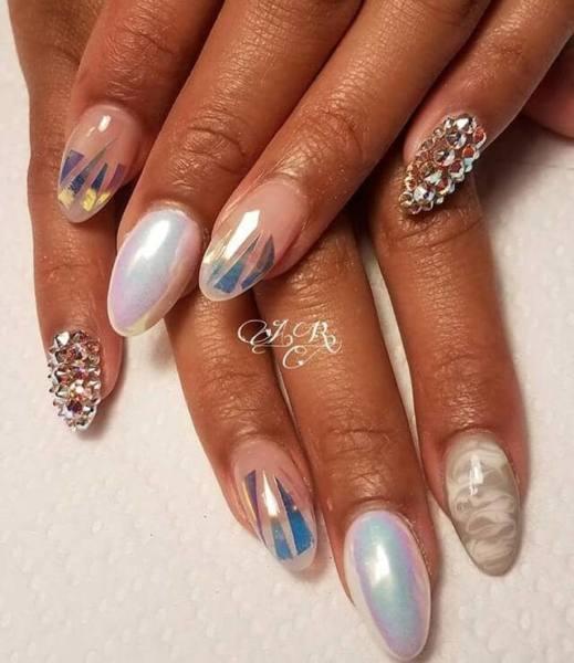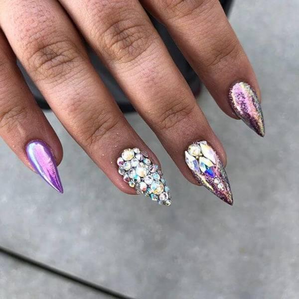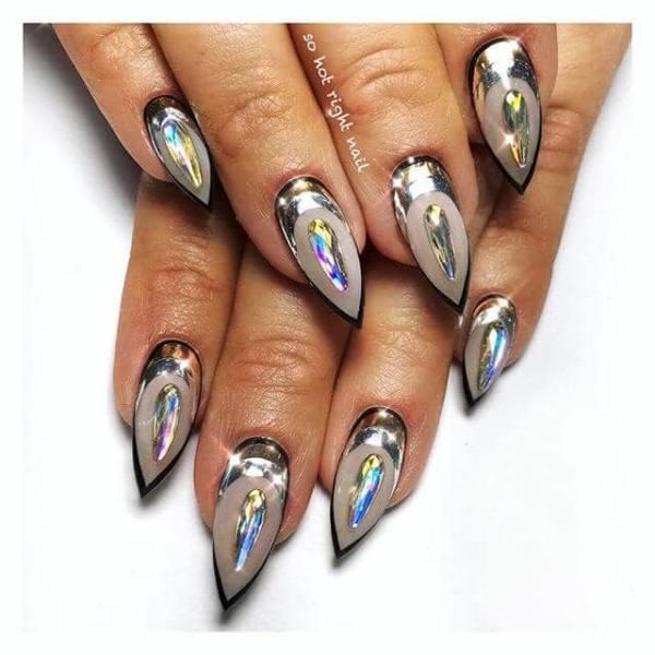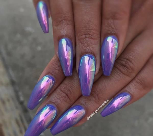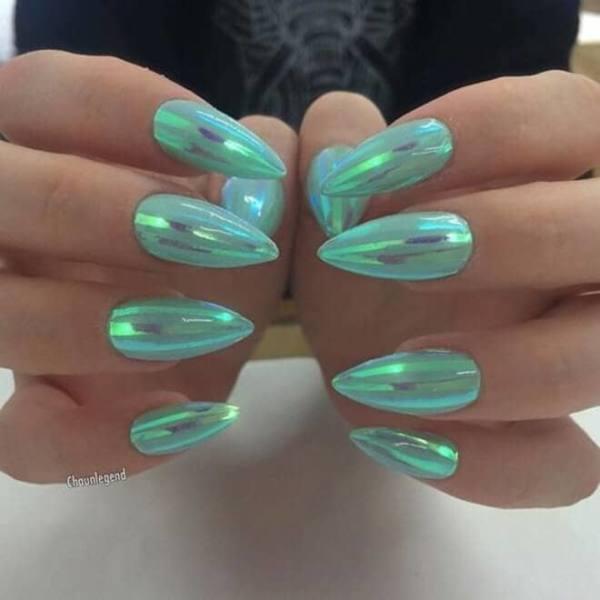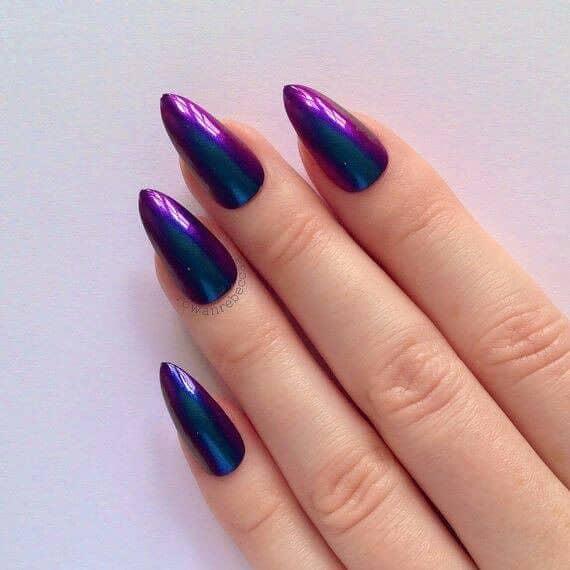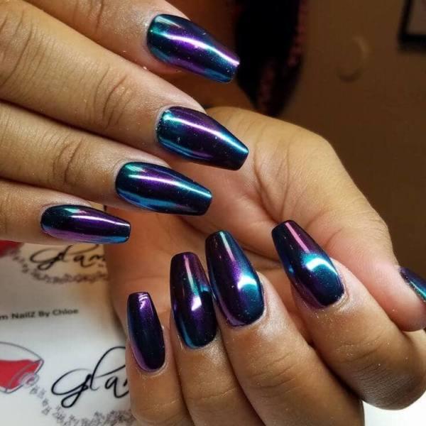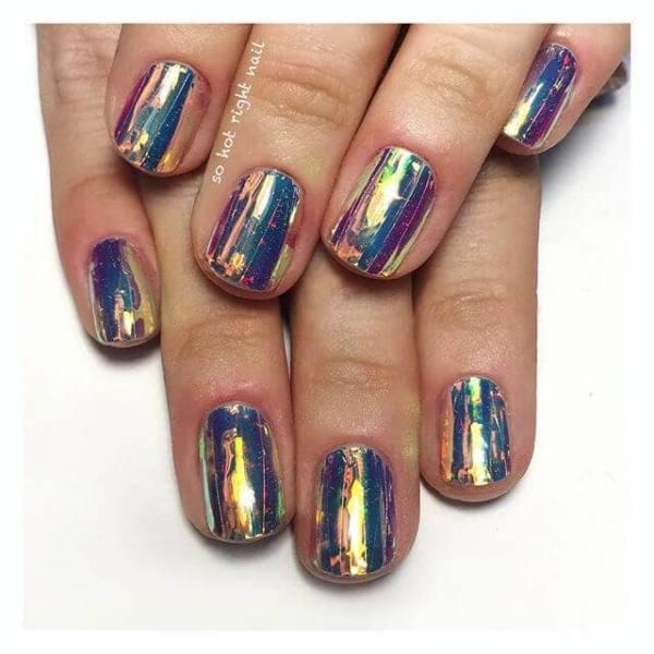 Estas uñas pueden no usar esmalte de cromo, pero las uñas brillantes resultantes tienen un toque de cromo en ellas, sin embargo. Con el aumento de tantos tipos de manicura en varios sitios de medios sociales, nos encantan los que parecen mezclar y combinar lo mejor de tantos estilos diferentes para crear diseños de uñas verdaderamente diferentes.