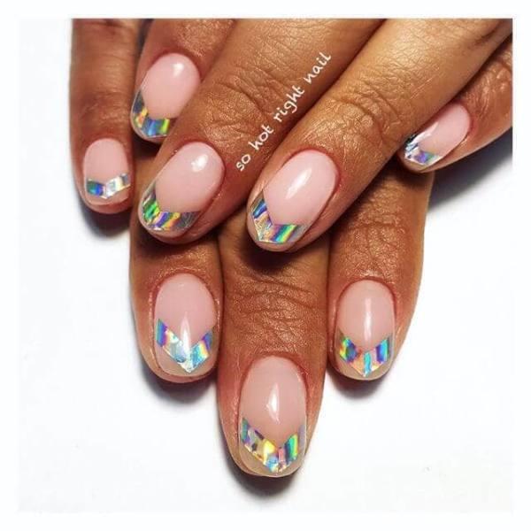 El rosa siempre ha sido un color popular para el adicto promedio a las uñas, y el polvo holográfico realmente lo lleva al siguiente nivel! Simple, limpio y con clase, esta idea del esmalte de uñas es un magnífico guiño a las ideas de la vieja escuela sobre las uñas, mientras que abraza el brillo brillante que ha llegado a ser tan característico de las uñas holográficas modernas.