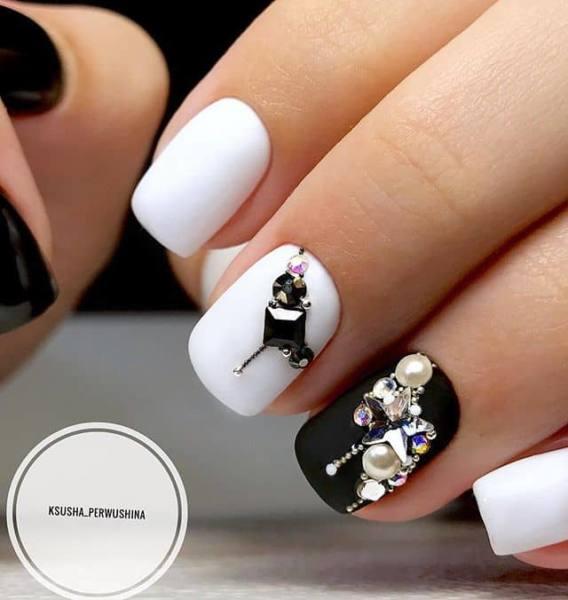 50 magníficas ideas de uñas blancas y negras para un look chic
