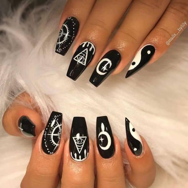 Estas uñas son el estándar de oro cuando se trata de arte y diseño de uñas. Cada uña se hace de manera diferente, pero cada uña es muy detallada, intrincada y compleja. Estas uñas tienen de todo, desde brújulas, yin-yang hasta el ojo que todo lo ve y más. Estas uñas no son simplemente uñas; son obras de arte.
