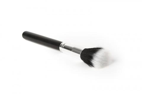 Se trata de una brocha compuesta por pelo negro natural en la base y fibras sintéticas blancas en el extremo. Es de lo más polivalente porque sirve tanto para líquidos, como para polvos, incluso para aplicarse la crema hidratante en la cara. Posa el producto sobre la piel ligeramente con un efecto difuminado y un resultado suave y natural.