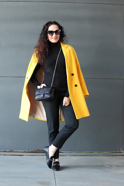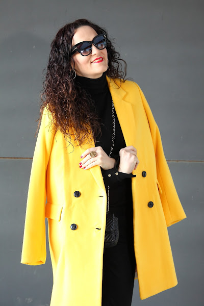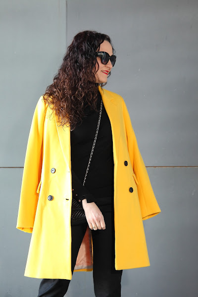Ya sabéis que el negro me rechifla, aunque reconozco que el amarillo siempre le ha seguido muy de cerca. A la hora de vestir me encanta y suelo utilizarlo como ya habéis visto por aquí. Por eso siempre había tenido en mente comprarme un abrigo amarillo, aunque la verdad que hasta la fecha en este color no es que hubiera visto mucha cosa que valiera la pena. Sin embargo, la semana pasada lo encontré, como yo lo tenía en mente, tanto por el tono como por el corte. Para estrenarlo me decanté por un total look negro y aproveché para ponerme mis nuevos mocasines.
