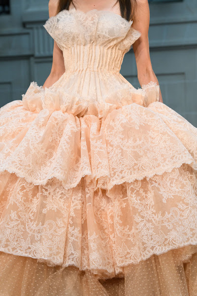 No soy muy fan de la vida ni la moda tipo princesita, pero reconozco que esta colección de Alexis Mabille me ha gustado mucho. No sé si vosotras estaréis de acuerdo, pero a mí la mayoría de estos diseños me recuerdan a las princesas de las películas Disney, sobre todo a Bella, de la Bella y la Bestia, y a Cenicienta, ¿no os parece? Esos vestidos así tan pomposos y de colores pastel...