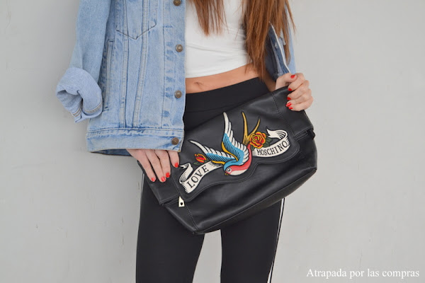 Athleisure (athletic: atlético + leisure: ocio), o lo que es lo mismo, aprovechar nuestra ropa de deporte para nuestros looks diarios: ir de compras, trabajar, eventos varios...., digamos que es una nueva variante del sporty chic o lo que yo siempre he llamado "arreglá pero informal" y es que quién me iba a decir a mi que me iba a poner unas mallas de deporte con tacones..... Tengo que reconocer que no es la tendencia que más me atrae ni que más me gusta ni con la que más cómoda me siento, pero en esta de la moda hay que probar y arriesgar y aquí estoy.... En este look he combinado unos leggins con banda lateral (al pantalón jogger con puño en el tobillo todavía me resisto) con un crop top. De prenda de abrigo le añadí una cazadora vaquera Levis que tengo desde los 14 ó 15 años y como de aquella usaba mucha más talla que ahora me viene de lujo para esta temporada donde las cazadoras vaqueras oversizes un poco desgastadas son una de las prendas estrella. De calzado sandalias de tacón, bolso de MOSCHINO y el toque final para rematar este look noventero, un choker, recordáis aquellas gargantillas pegadas al cuello que prácticamente todas llevamos en los años 90, pues han vuelto y prometen arrasar!!!