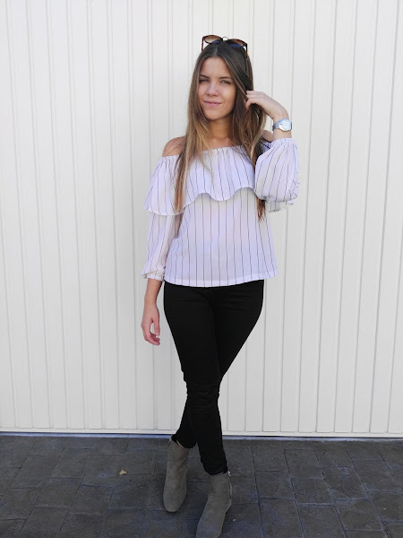 Las primera cosa de este look de Zaful es la blusa (que me recuerda un montón a una que hubo en Zara hace poquito) que yo creo que es con lo que más contenta estoy. La pedí por que el otoño está a la vuelta de la esquina y me pareció ideal por que a pesar de ser de escote de barco las mangas son largas.