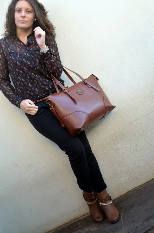 Cuando hace frío, en otoño e invierno, me gusta vestir de negro, y optar por looks total black. El outfit de hoy es un total black con unos pocos matices en marrón. Dicho así, marrón y negro parece que no combinen muy bien...pero si sabes darle el toque justo quedan genial. En este caso, opté por una blusa negra con estampado cashemere en tonos marrones y burdeos y la combiné con complementos en marrón. ¿qué os parece el resultado? Es un outfit perfecto para el día a día, con un toque chic y sobretodo cómodo.