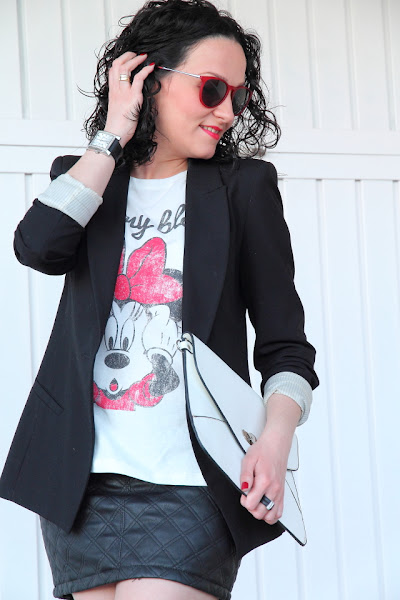 Blazer: Zara. Camiseta: Primark. Falda: Sheinside.