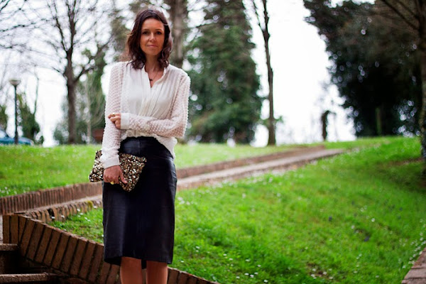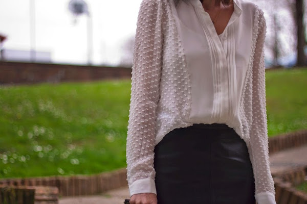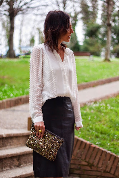 Un look algo más arreglado de lo habitual pero es que de vez en cuando apetece ponerse más mona, no? De nuevo la falda midi de piel, esta vez ya con medias, por fin he encontrado unas lo suficientemente naturales como para salir a la calle con ellas!!!