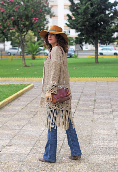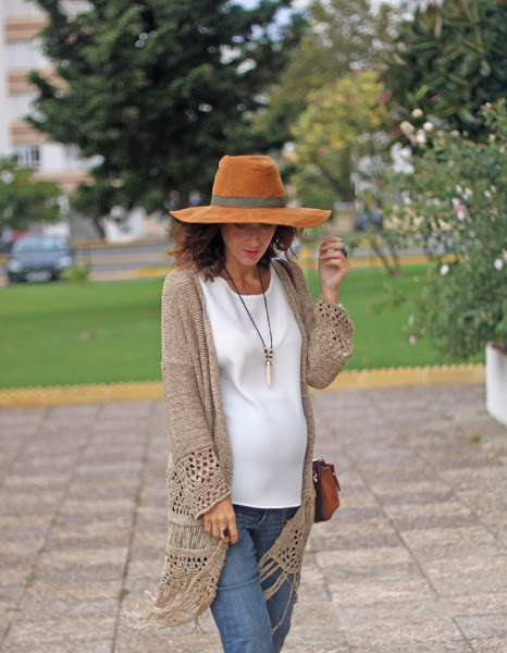 A estas alturas la verdad es que me cuesta encontrar ropa adecuada que no sea premamá con la que me encuentre cómoda, pero es que ya me niego a comprar nada que me sirva sólo en el embarazo. En el look de hoy he combinado los vaqueros, que sí son premamá, con ropa que tenía en mi armario para crear un look de estilo boho, uno de mis preferidos (Aquí, aquí y aquí podéis ver otros looks de inspiración boho que han ido apareciendo por el blog ;)