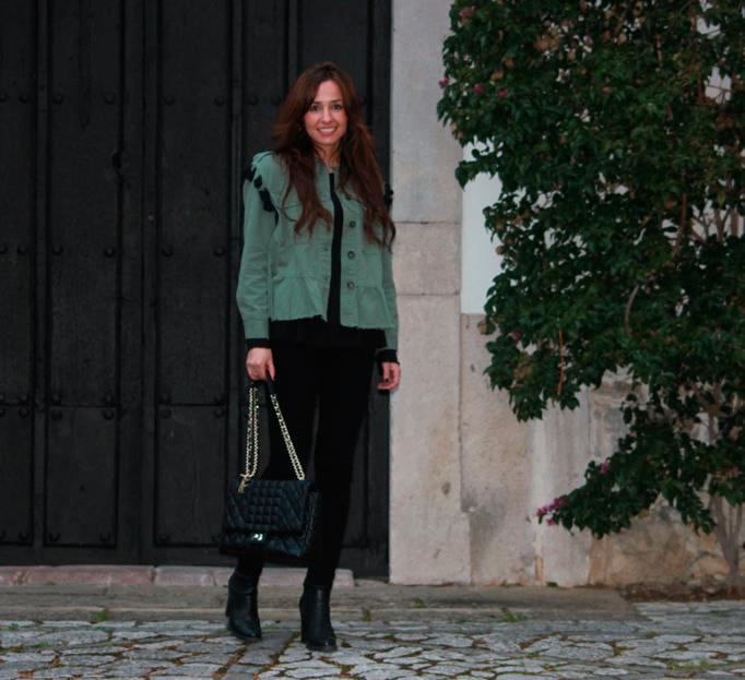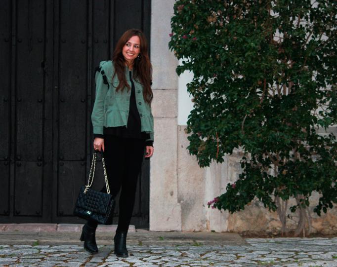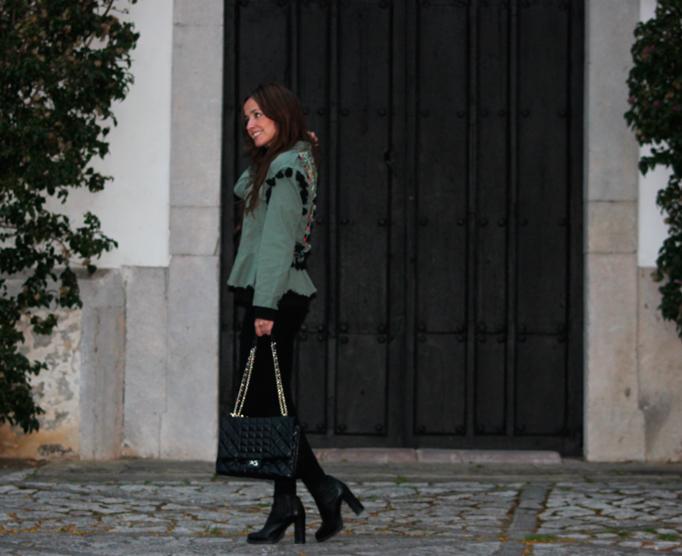Es la primera chaqueta que tengo con bordado en la espalda, los detalles bordados así como las borlas en los laterales la hacen tremendamente especial, además llevaba unos pendientes que también me traen enamorada de borlas en negra la pena que no se aprecian en las fotos. Como podéis observar, una vez mas no quise arriesgar e hice un todo al negro en toda regla, repitiendo el que se ha convertido en uno de mis bolsos preferidos.
