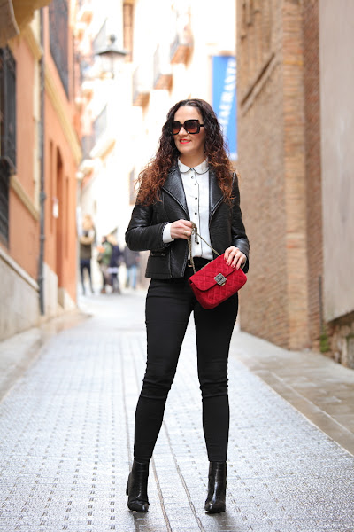 Un combo que nunca falla es el blanco y negro, y si a esto le sumamos la comodidad de vestir con jeans, una camisa con un toque chic y biker obtenemos un look perfecto de los que a mi me chiflan. Además, los que me conocéis sabéis que me encanta jugar con los complementos, por eso esta vez me he decantado por añadir mi nuevo bolso de terciopelo granate de Rosegal que no puede quedar mejor con este ...