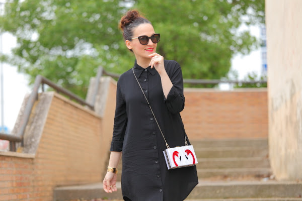 Hace unos días ya os comenté aquí que esta temporada me estaba dando fuerte por las camisas oversize. Me resultan muy cómodas y los mejor que es que se pueden llevar tanto de vestido como con pantalones. Hoy os enseño esta camisa negra que fue un auténtico flechazo cuando la vi, las que me conocéis desde hace tiempo ya sabéis cuanto me gusta el negro. Os la enseño con zapato plano aunque con taconazo queda ideal, así que más adelante ya os mostraré un look con este combo. Pero lo que más me gusta de este outfit es como resalta con la camisa mi nuevo clutch de flamencos. Lo he comprado para un evento familiar que tengo dentro de unos días pero con lo que me gusta no me he podido resistir a estrenarlo antes.