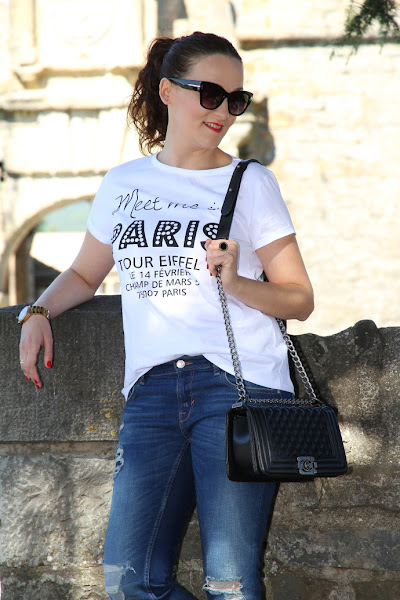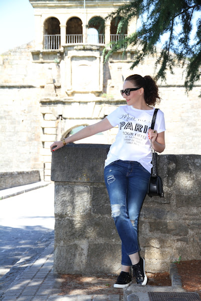 Hoy vengo con un look sencillo de los que me gusta llevar en mis ratos de ocio cuando quiero ir cómoda. Este fue el outfit elegido para pasar un día en la montaña disfrutando del paisaje y haciendo un poco de turismo. Como siempre confié en los tejanos, para mi la prenda por excelencia porque lo llevo a lo largo de todo el año y nunca me canso de ellos. Esta vez opté por jeans tobilleros que combiné con una camiseta con mensaje en blanco y negro. En los pies mis nuevas zapatillas, desde hacía tiempo me apetecían unas en color negro y al ver estas simplemente me enamoraron.