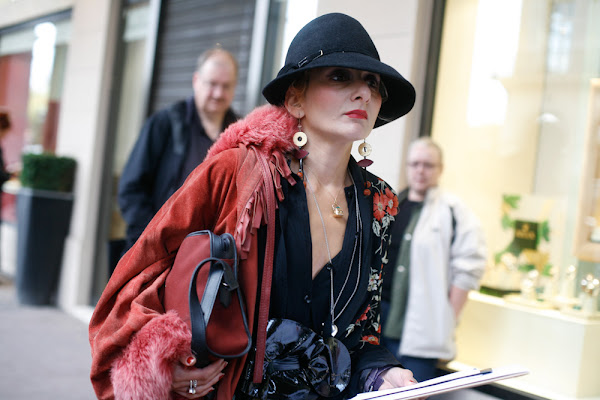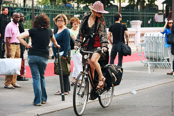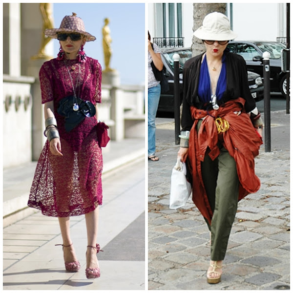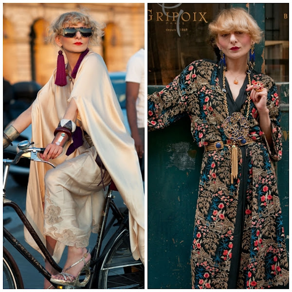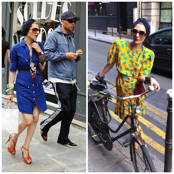Hoy voy a dedicar un post a uno de mis iconos de estilo favoritos, la estilista australiana Catherine Baba. Vive en París desde hace años y ha trabajado para firmas como Chanel, Úngaro, Balmain, Givenchy o Moschino y para revistas como Vogue o Vanity Fair. Sus estilismos, compuestos en su mayor parte, por prendas vintage, kimonos, sombreros, turbantes y grandes pendientes, desprenden glamour cual diva hollywoodense de los 30 y es habitual verla paseando con su bicicleta y sus inseparables tacones. Aquí os dejo algunos de sus looks y sus combinaciones imposibles......