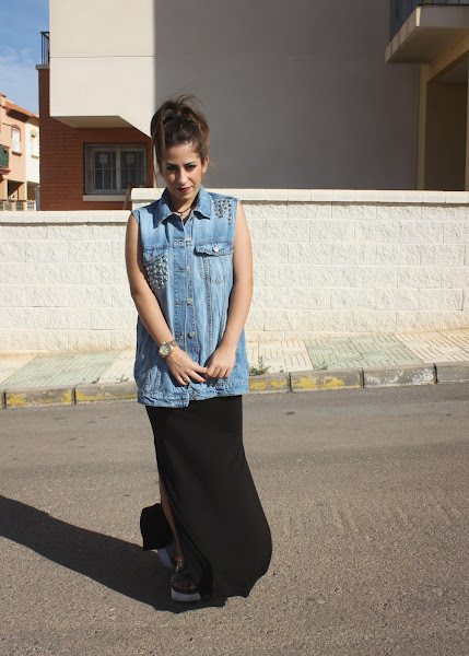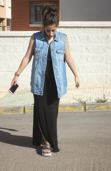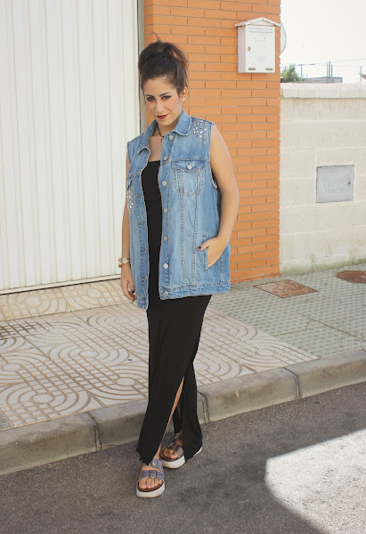 I have to show you this beautiful vest that I fell in love at the moment I saw it. It had to be mine yes or yes. I will use it a lot because I love it and I think it give life and a rock touch to any look. This time I combine it with a maxi black dress and my favourite sandals.