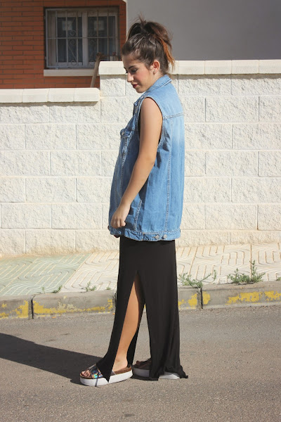 Tenía que enseñaros esta preciosidad de chaleco vaquero, del que me enamoré completamente en cuanto lo vi y tenía que ser mío sí o sí. Le voy a sacar muchísimo partido este nuevo curso, porque me encanta, y pienso que le da muchísima vida y rollo rockero a cualquier look, por muy sencillo que sea. En esta ocasión lo he combinado con un maxi vestido negro sin mangas, y mis sandalias favoritas.