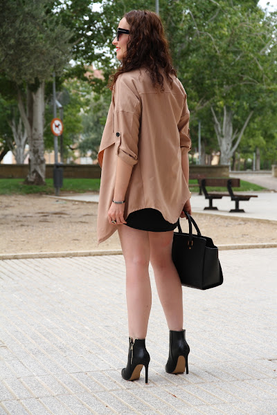 No tengo ninguna gana de entrar en invierno, pero si que es verdad que el tiempo que tenemos ahora que permite ir de manga corta con una chaqueta encima me gusta mucho. Además, tenía ya ganas de que llegaran estas temperaturas porque tenía está chaqueta oversizedesde principios de septiembre esperando en el armario para ser estrenada. He decido dejarle todo el protagonismo así que al ser camel la he combinado con un vestido negro y mis botines nuevos que compré en rebajas a un precio de risa.