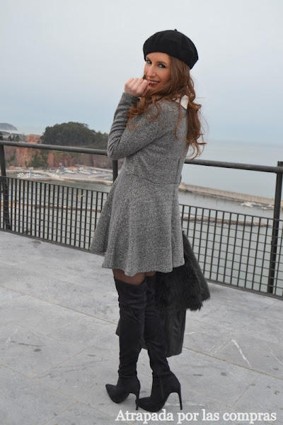 En cuanto vi este vestido de SHEINSIDE (aquí) supe que tenía que hacer un look al más puro estilo parisino. Me pareció un vestido muy ponible y el detalle del cuello, que me recuerda a alguno que vi en la colección de Saint Lauren y de Tommy Hilfiger, le da cierto aire preppy o college que contrarrestro con las botas de mosquetero o botas over the knee para darle un punto un tanto sexy. El toque parisino se lo doy con la boina, creo que no hay accesorio más parisino que una boina. Y de prenda de abrigo como era un día que no estaba especialmente frío un chaleco de pelo. Qué os parece el look?
