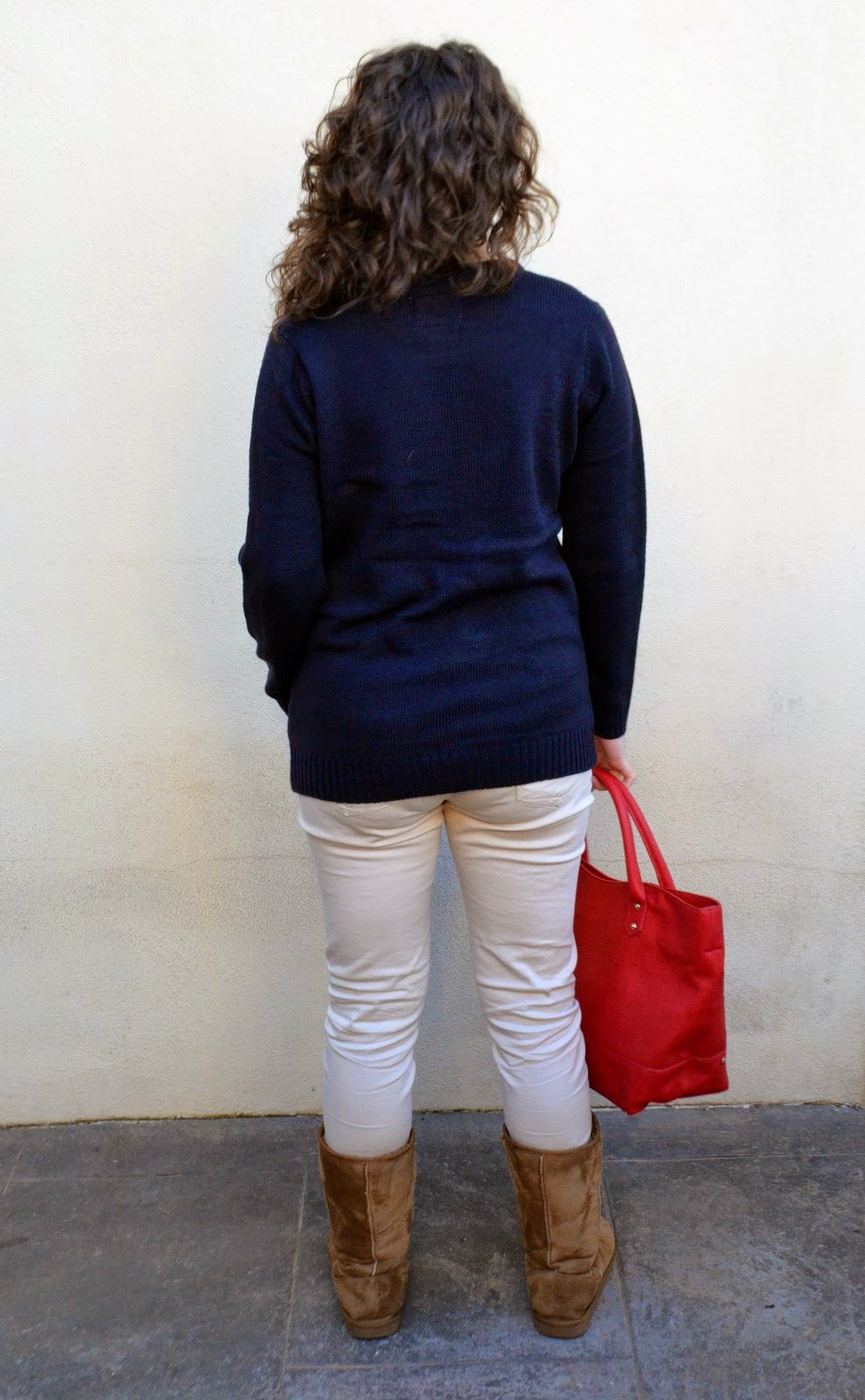Chaquetón: ? / Jersey, pantalones, botas: Primark / Bolso: Blanco