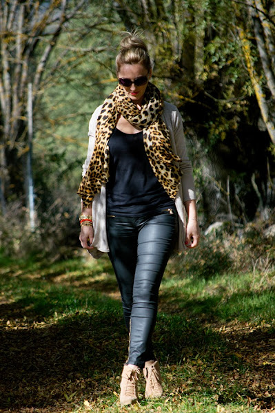 El look de hoy es de lo más otoñal, es ver las fotos (los colores, el paisaje....) y pensar en el otoño. Colores como el burdeos, el verde musgo o el camel inundan esta estación del año y en este outfit he combinado algunos de ellos con una blusa granate con tachas, un pantalón verde musgo y los botines y el bolso con tachas en camel.Como prenda de abrigo he optado por el juego que dan las prendas ...