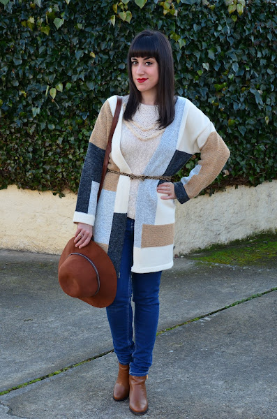 Ya sabéis que he empezado a trabajar en una nueva empresa y que estoy muy contenta. Adaptarse a lo nuevo nunca es sencillo pero he tenido la gran suerte de encontrar un equipo humano estupendo que me lo está poniendo muy fácil. Como podréis suponer colaborar con una empresa así merece la pena y para muestra aquí tenéis este chaquetón de cuadros con una gama de colores realmente bonita. Una estructura entallada, muy favorecedora, y que marca especialmente la figura. Me apetecía jugar con los complementos y elegí el color burdeos para el bolso y el sombrero fedora y el mostaza para la bufanda. Creo que es un combo ganador!