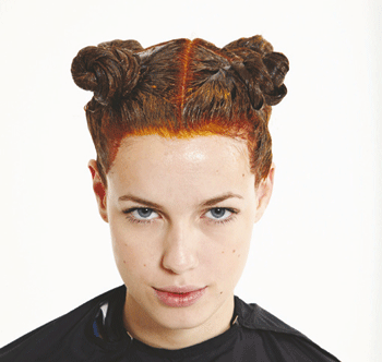 5. Con el cabello que nos queda atrás, haremos las particiones en diagonal des de la coronilla hasta la nuca y, con el otro lado, haremos exactamente lo mismo. Una vez hechas las particiones, rodearemos las orejas y la nuca con producto.