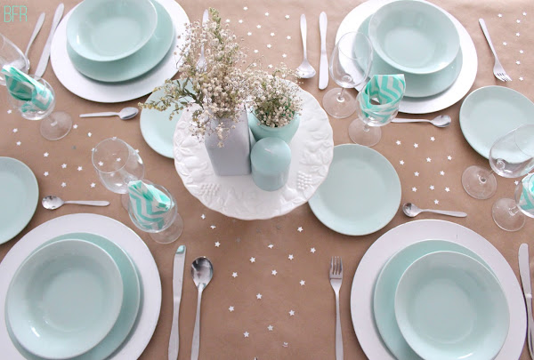 Quizás consideres que las plumas no son una buena idea, ya que no son típicas de esta fecha, sin embargo hacer una decoración enteramente blanca e incluir estos particulares adornos. Coloca tus copas, algunos platos asimétricos y velas blancas dentro de sus portavelas, los cuales deberán ir a juego con los demás elementos que se encuentren sobre la mesa.