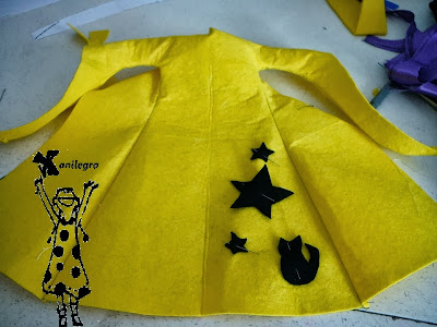 Lo único señalar que tambien le pasé el mismo festón que al vestido Ahora quedan los detallitos personales , ya veis que yo le he atado una cintita por debajo del pecho y le puse una estrella en el sombrero
