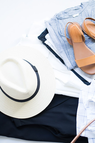 . Lleva una camiseta básica gris, blanca, negra y de rayas marineras. Unos vaqueros, unos pantalones negros, un vestido y una camisa larga que también sirva para la playa y listo.