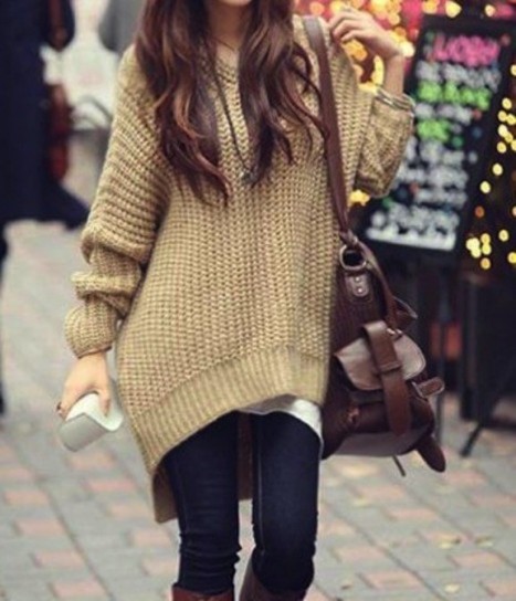 ¿A que no imaginábais que pudiera sentar así de bien un jersey gordito con una falda de tubo negra, de cuero?