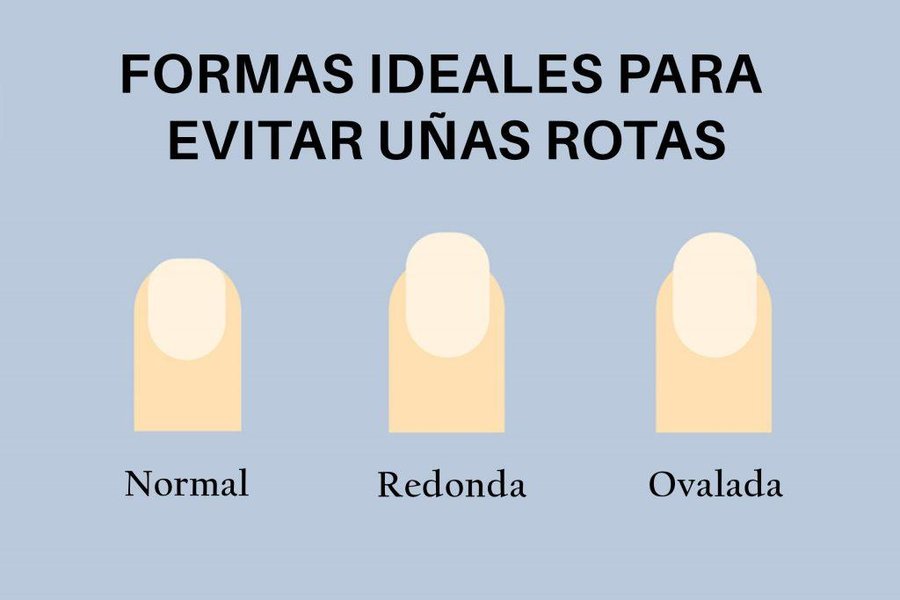 Opta por uñas en un largo y forma adecuada (te puede evitar problemas a la larga). Considera llevarlas en forma normal, redonda u ovalada en un largo mediano, y estoy segura de que las posibilidades de que se rompan disminuirán.Usa productos hidratantes como aceites que contengan en su formulación componentes que le den fortalecimiento e hidratación tanto a las cutículas como a las uñas, y nunca, ¡nunca estires los padrastros!